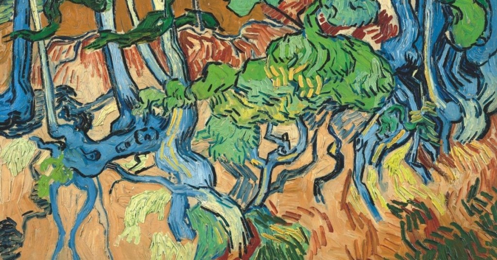 Racines d’arbres est le dernier tableau, inachevé, de Vincent Van Gogh a longtemps gardé son mystère. « Pendant une longue période, on a pensé qu’il s’agissait-là des premiers pas de l’art abstrait. Vincent Van Gogh était tellement novateur qu’il paraissait tout à fait logique que cet artiste puisse, à un moment, bousculer tous les codes figuratifs, vraiment les faire exploser.